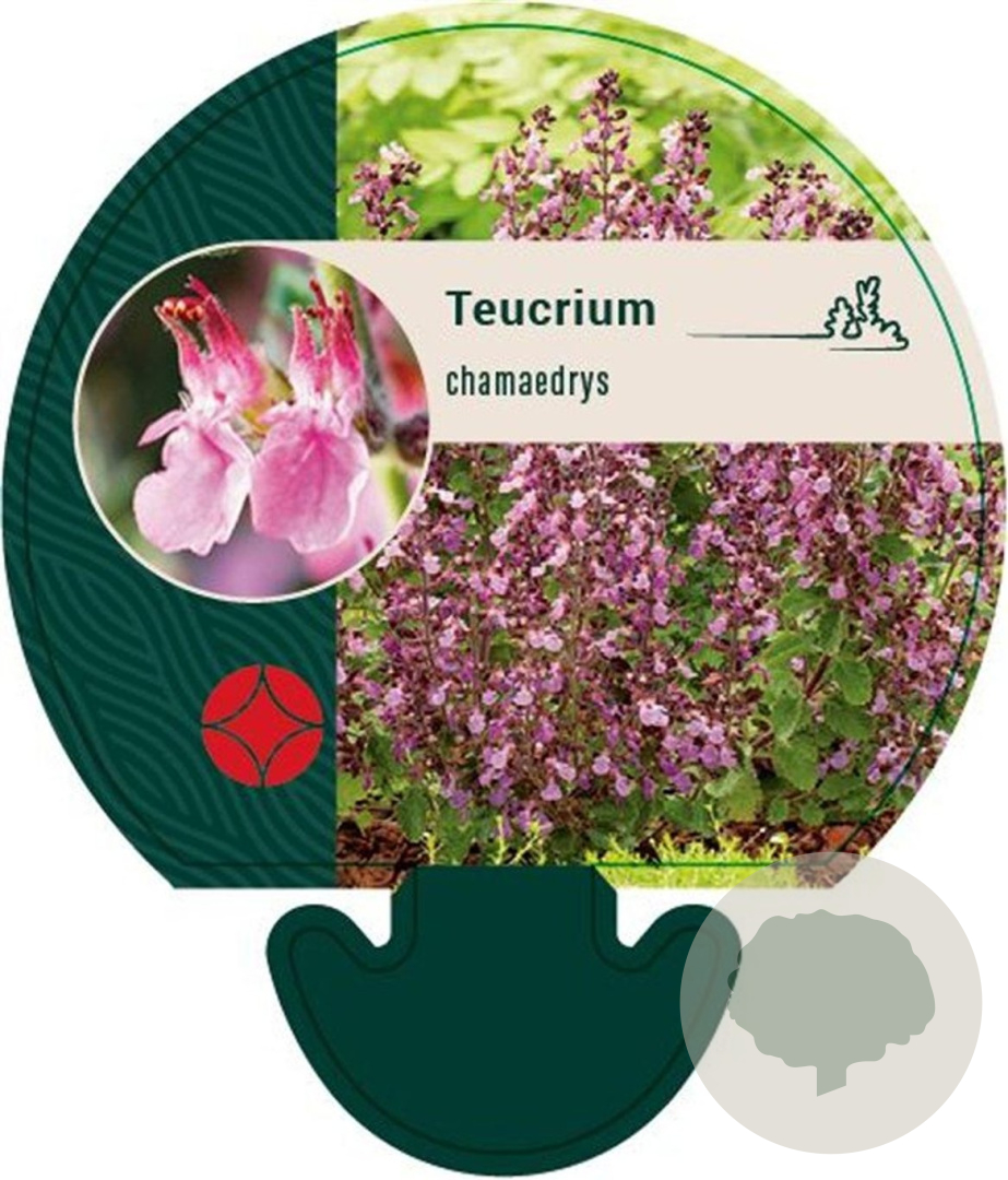 | Toelichting | De Gamander is een compacte plant met roze bloemen en groen blad. Deze plant bloeit van juni tot augustus en gedijt goed in zon en halfschaduw op zand-, klei- of neutrale grond. |