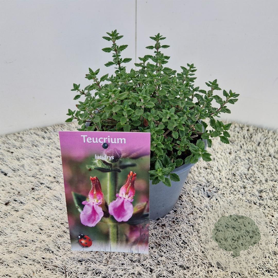 | Toelichting | De Glanzend gamander is een compacte plant met roze bloemen en groen blad. Bloeit van juni tot augustus en gedijt goed in zon en halfschaduw op zand-, klei- of neutrale grond. |