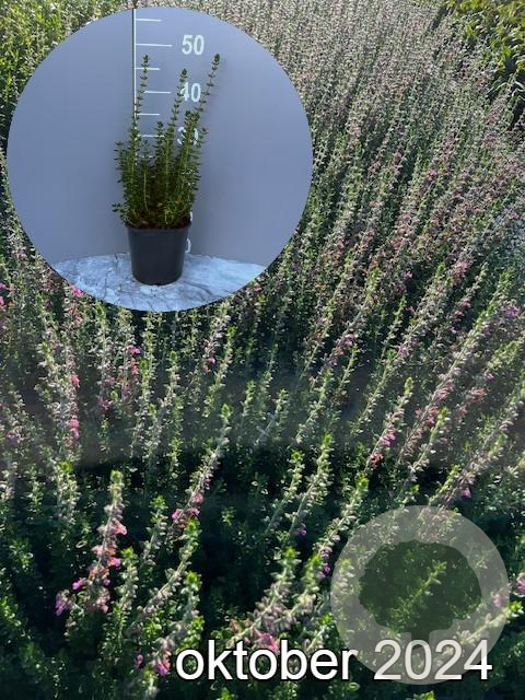 | Toelichting | De Glanzend gamander is een compacte plant met roze bloemen en groen blad. Bloeit van juni tot augustus en gedijt goed in zon en halfschaduw op zand-, klei- of neutrale grond. |