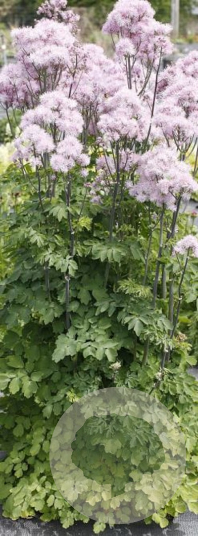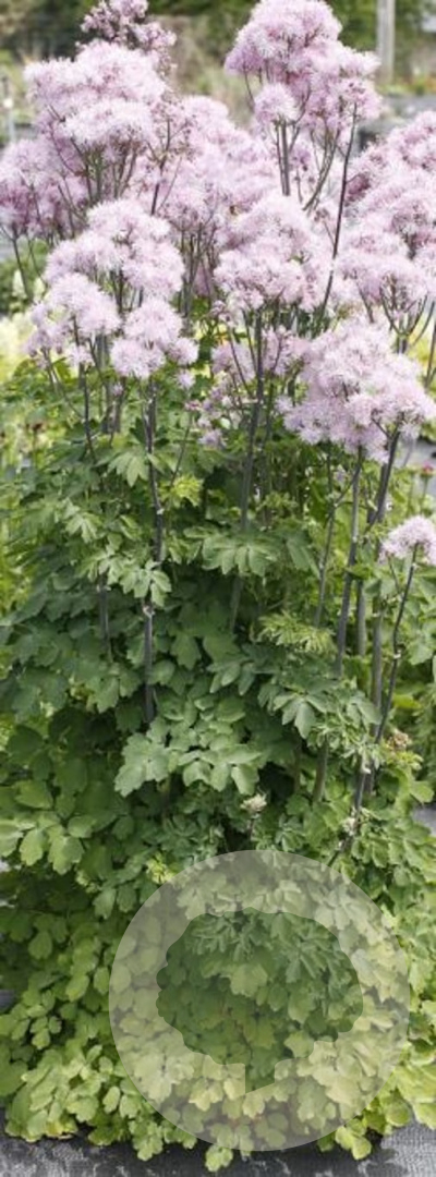 | Toelichting | De Thalictrum Nimbus Pink, ook wel bekend als Ruit, is een prachtige plant met roze bloemen en groen blad. Deze plant bloeit van juni tot augustus en gedijt goed in de halfschaduw op neutrale tot humusrijke grond. Perfect voor een kleurrijke tuin! |