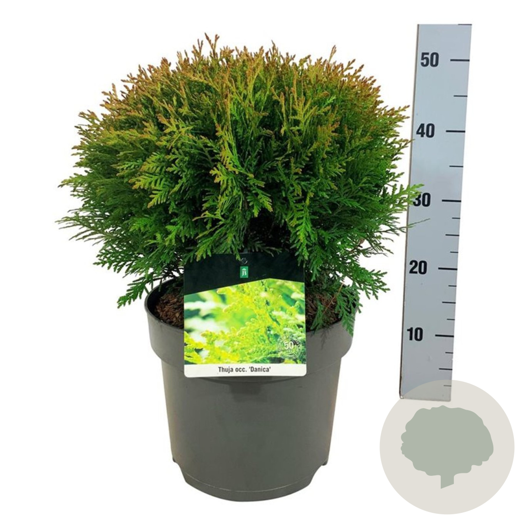 | Toelichting | De Westerse Levensboom (Thuja occidentalis 'Danica') is een compacte conifeer met groen blad. Deze plant wordt ongeveer 100 cm hoog en gedijt goed in zon en halfschaduw op zandgrond, klei of neutrale grond. Perfect voor een groenblijvende haag of border. |