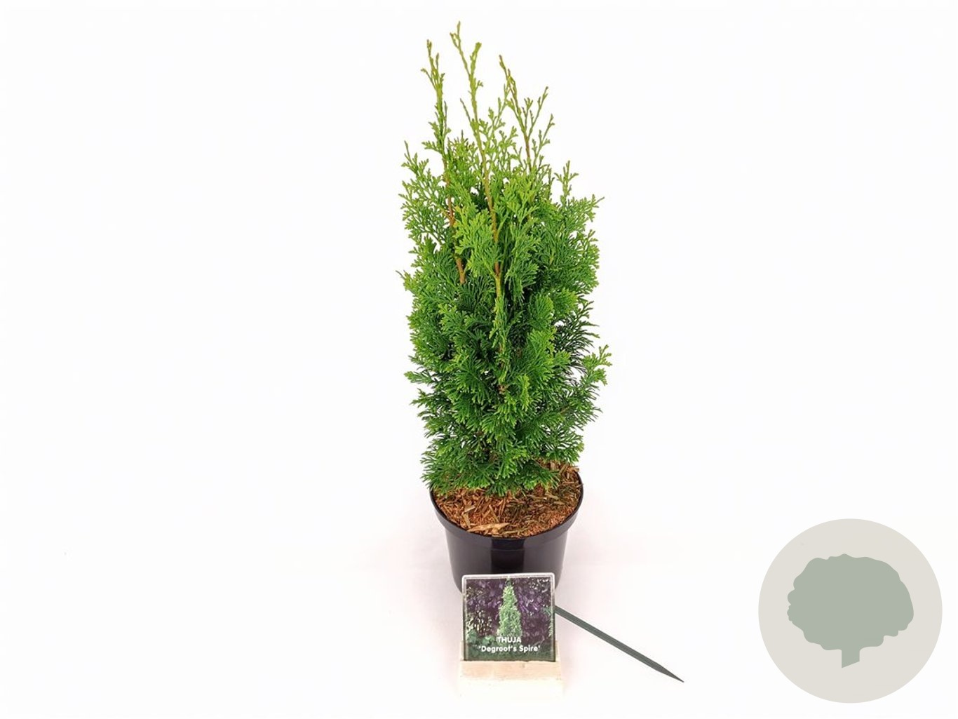 | Toelichting | De Westerse Levensboom 'Degroot's Spire' is een prachtige conifeer met donkergroen blad. Deze boom kan een hoogte bereiken van 300 cm en gedijt goed in zowel zon als halfschaduw op zandgrond, klei of neutrale grond. |