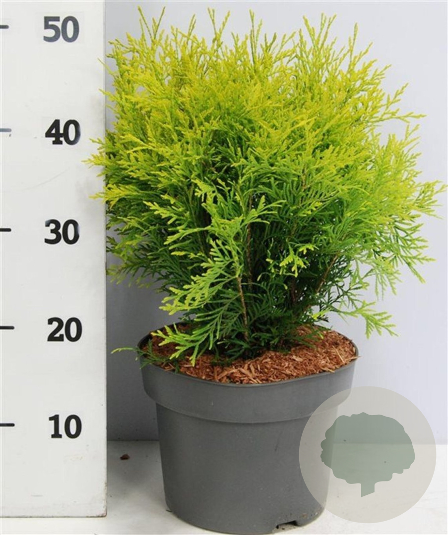 | Toelichting | De Thuja occidentalis 'Golden Globe', ook bekend als de Westerse Levensboom, is een compacte conifeer met groen blad. Deze plant gedijt goed in zon en halfschaduw op zandgrond, klei of neutrale grond. De plant bloeit niet, maar heeft een mooie groene kleur en bereikt een hoogte van 150 cm. |