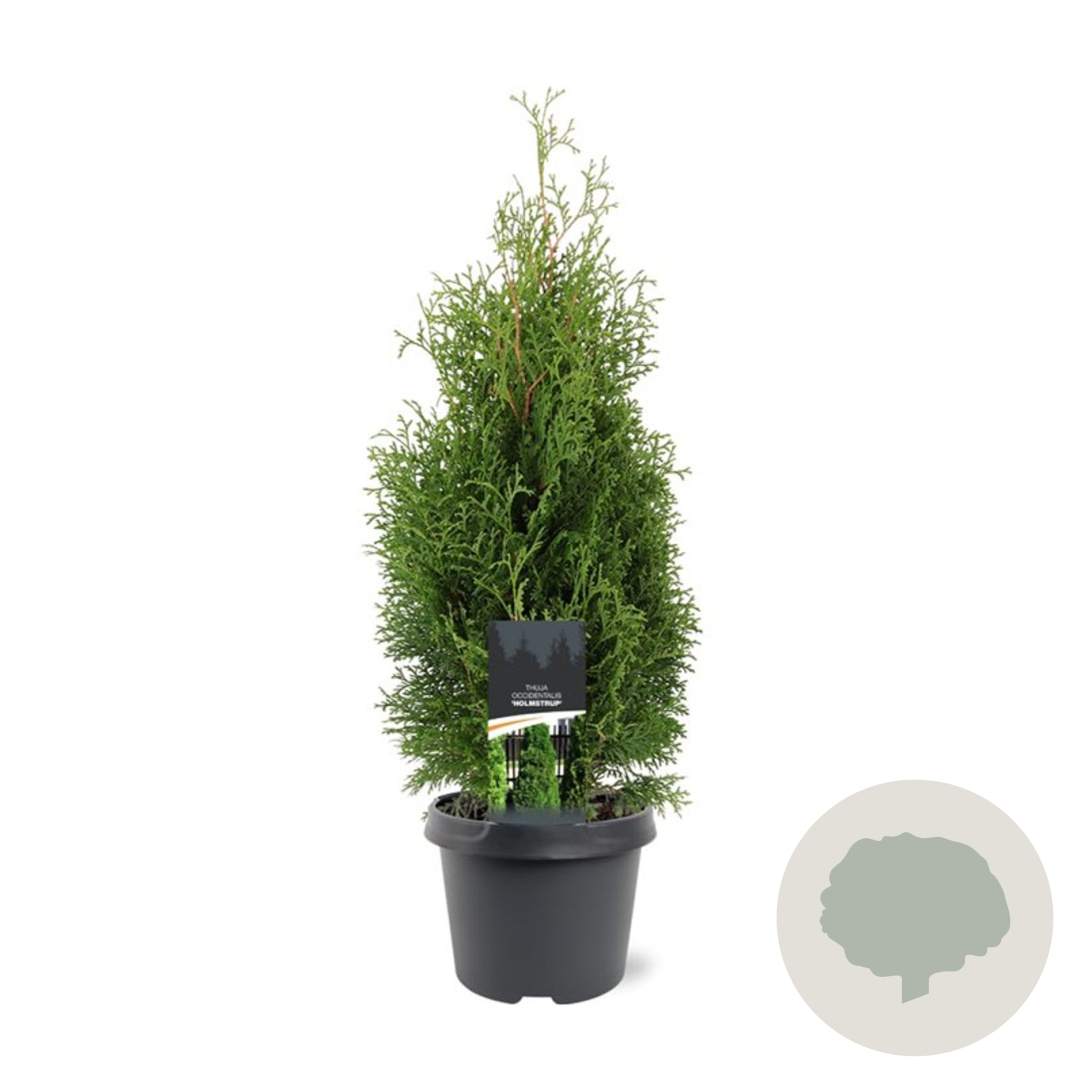 | Toelichting | De Westerse Levensboom 'Holmstrup' is een compacte conifeer met donkergroen blad. Deze sierlijke boom kan een hoogte bereiken van 300 cm en gedijt goed in zon en halfschaduw op zandgrond, klei of neutrale grond. |