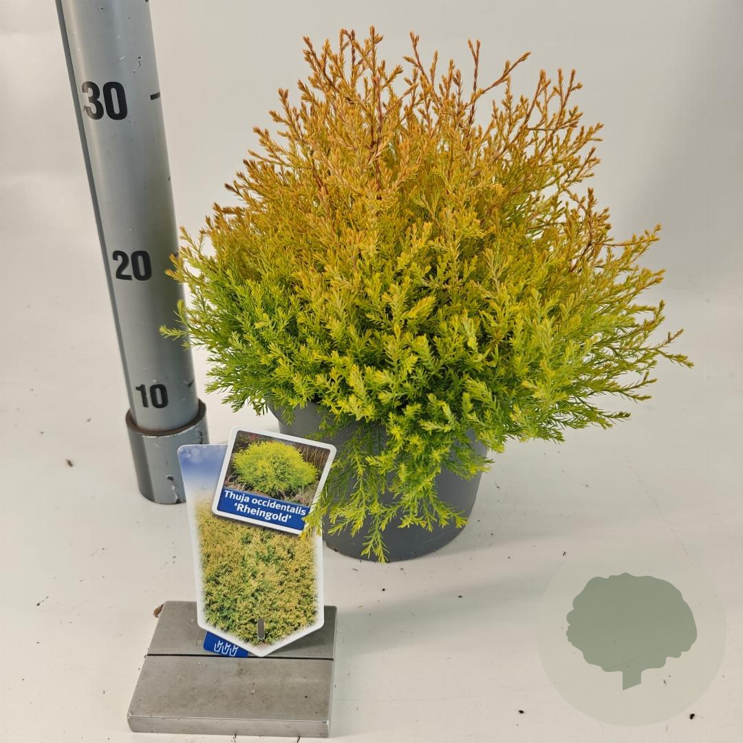 | Toelichting | De Levensboom (Thuja occidentalis 'Rheingold') is een prachtige conifeer met opvallend geel blad. Deze langzaam groeiende plant bereikt een hoogte van ongeveer 200 cm en bloeit in mei - juni. Geschikt voor zonnige tot halfschaduwrijke plekken in zandgrond, lichte klei of neutrale grond. |