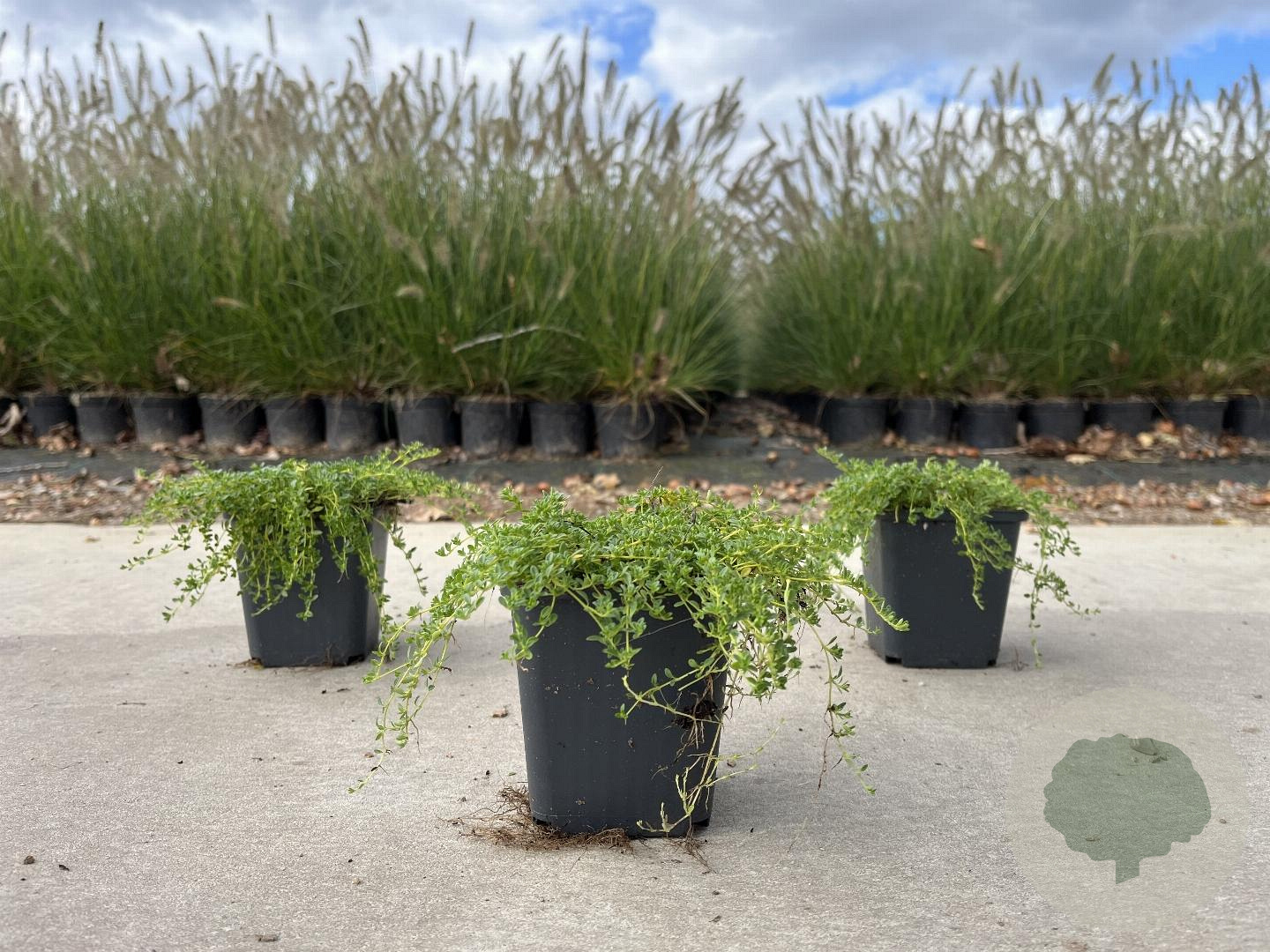 | Toelichting | Tijm (Thymus praecox 'Albiflorus') is een laagblijvend kruid met groen blad en witte bloemen. Het bloeit van juni tot augustus en gedijt goed in zonnige standplaatsen op zand- en kalkrijke grond. |