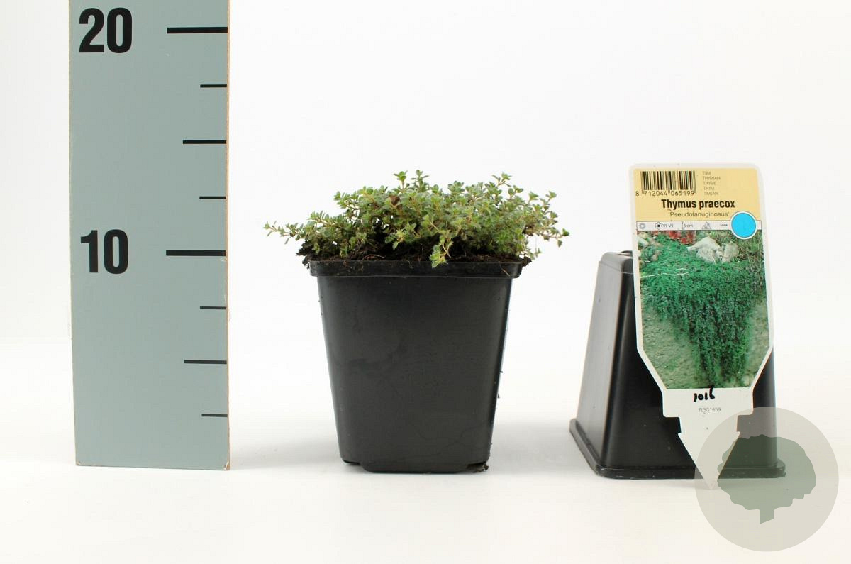 | Toelichting | Wollige tijm (Thymus praecox 'Pseudolanuginosus') is een laagblijvende kruidachtige plant met paarse bloemen en groen blad. Deze tijmsoort bloeit van juni tot juli en gedijt goed in zonnige, goed doorlatende grond met een gemiddelde stikstofbehoefte. |