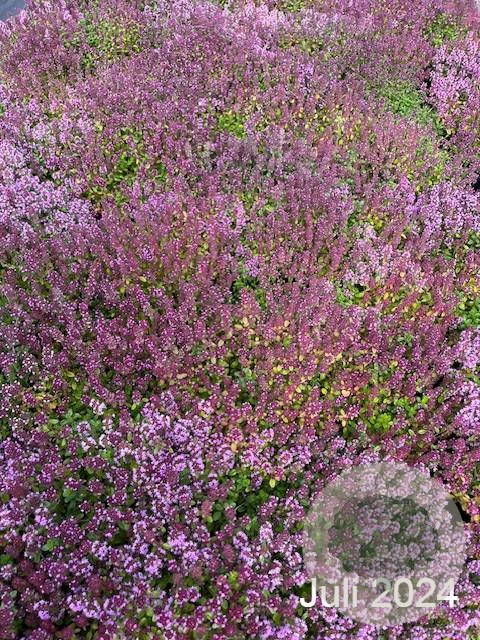| Toelichting | Wilde tijm (Thymus serpyllum) is een laagblijvende kruidachtige plant met paarse bloemen en groen blad. Deze tijmsoort bloeit van juni tot augustus en gedijt goed in zonnige, goed doorlatende grond. Perfect voor rotstuinen en borders. |