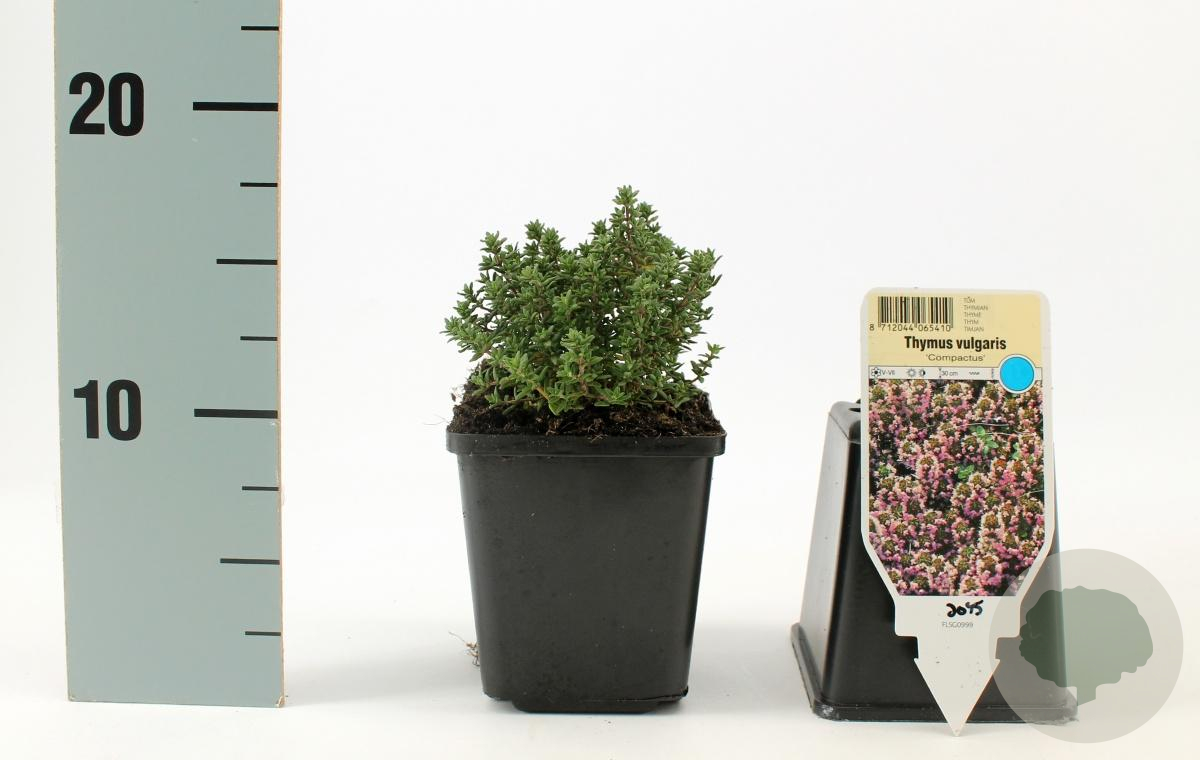 | Toelichting | Tijm (Thymus v. 'Compactus') is een laagblijvende kruidachtige plant met paarse bloemen en aromatisch groen blad. Bloeit van juni tot augustus en gedijt goed in zonnige, neutrale grond. Perfect voor in de kruidentuin of rotstuin. |