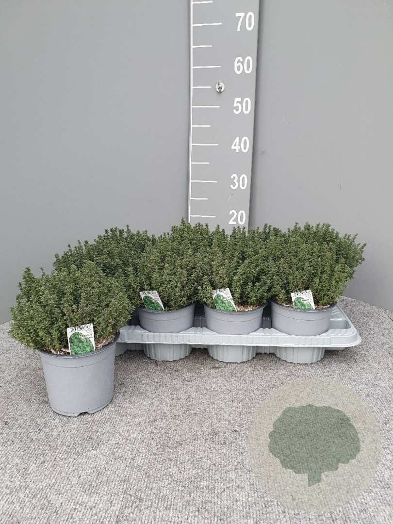 ToelichtingTijm (Thymus vulgaris) is een aromatische kruidenplant met paarse bloemen en groen blad. Deze plant bloeit van juni tot augustus en gedijt het beste in zonnige, goed doorlatende zand- en kalkrijke grond. Ideaal voor in de kruidentuin!