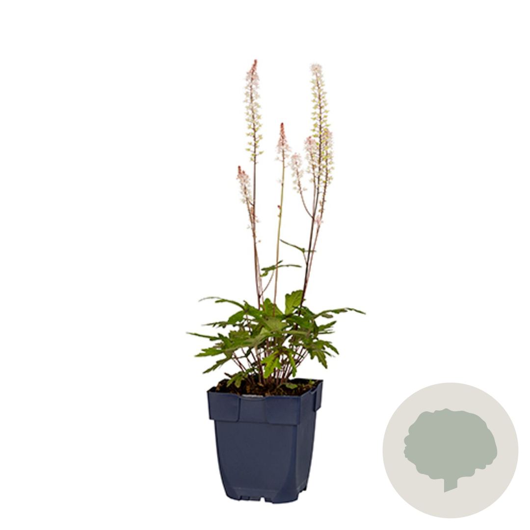 | Toelichting | De Schuimbloem (Tiarella cordifolia) is een prachtige bodembedekker met witte bloemen en groen blad. Deze plant bloeit in mei en juni en gedijt goed in de halfschaduw op zure en humusrijke grond. |