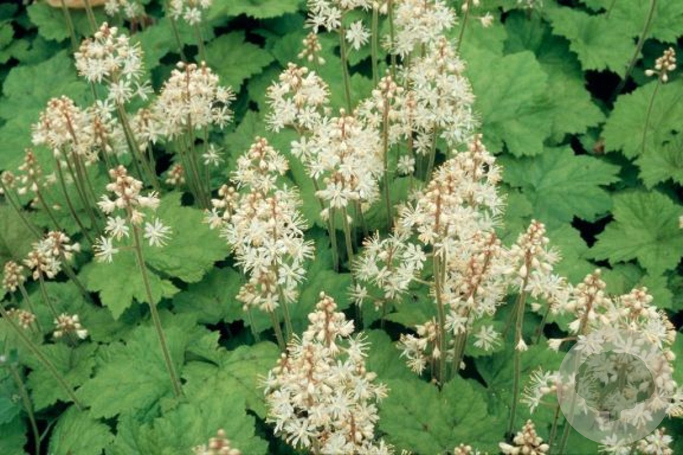 | Toelichting | De Schuimbloem (Tiarella cordifolia) is een prachtige bodembedekker met witte bloemen en groen blad. Deze plant bloeit in mei en juni en gedijt goed in de halfschaduw op zure en humusrijke grond. |