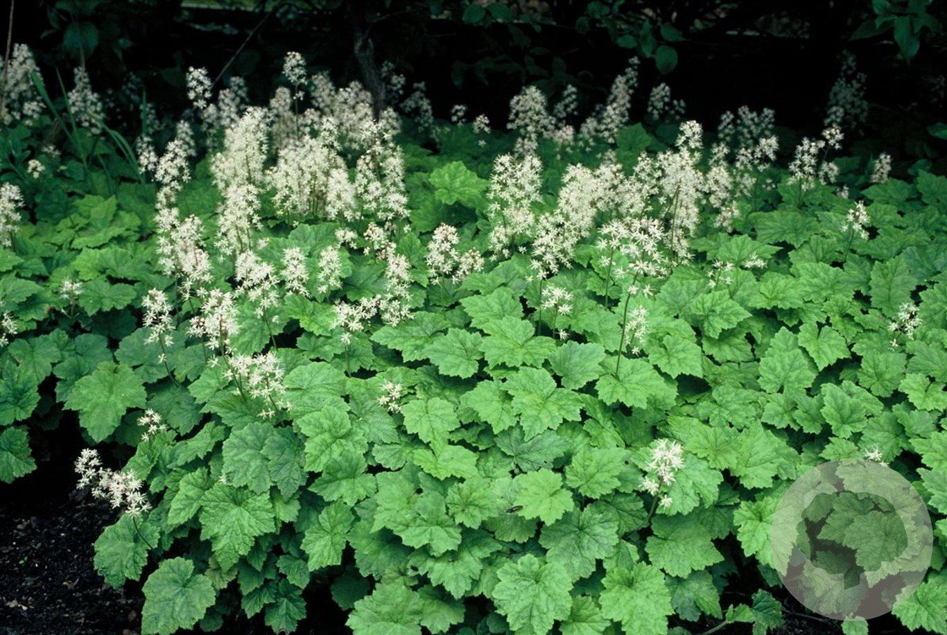 | Toelichting | De Schuimbloem (Tiarella cordifolia) is een prachtige bodembedekker met witte bloemen en groen blad. Deze plant bloeit in mei en juni en gedijt goed in de halfschaduw op zure en humusrijke grond. |