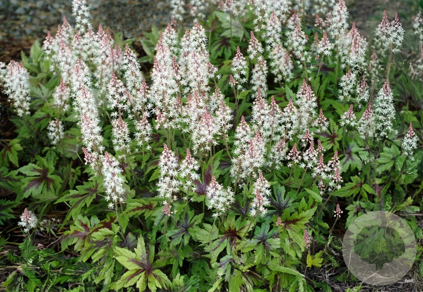 | Toelichting | De Schuimbloem 'Sugar and Spice' is een prachtige bodembedekker met witte bloemen en groen blad. Deze plant bloeit in mei en juni en gedijt het beste in de halfschaduw op zure en humusrijke grond. |