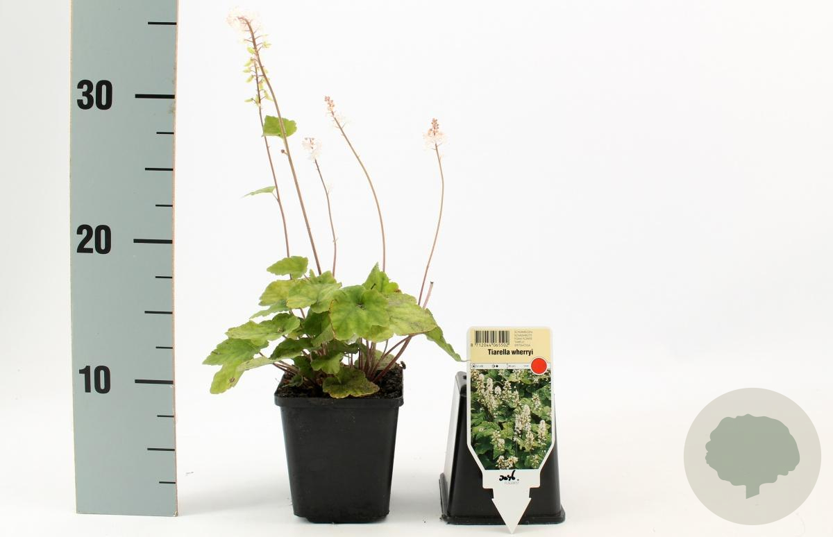 | Toelichting | De Schuimbloem (Tiarella wherryi) is een prachtige bodembedekker met witte bloemen en groen blad. Deze plant bloeit in mei en juni en gedijt goed in de halfschaduw op zure en humusrijke grond. |