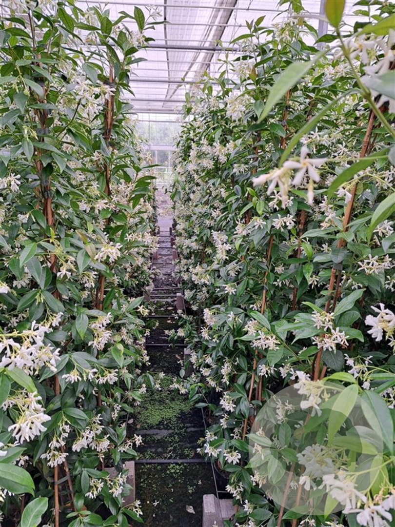 | Toelichting | De Sterjasmijn is een prachtige klimplant met witte bloemen en donkergroen blad. Deze plant bloeit van juni tot september en gedijt goed in zon en halfschaduw op zandgrond, lichte klei of neutrale grond. |