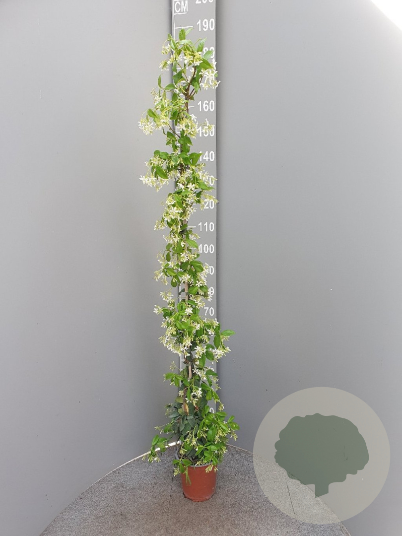 | Toelichting | De Sterjasmijn is een prachtige klimplant met witte bloemen en donkergroen blad. Deze plant bloeit van juni tot september en gedijt goed in zon en halfschaduw op zandgrond, lichte klei of neutrale grond. |