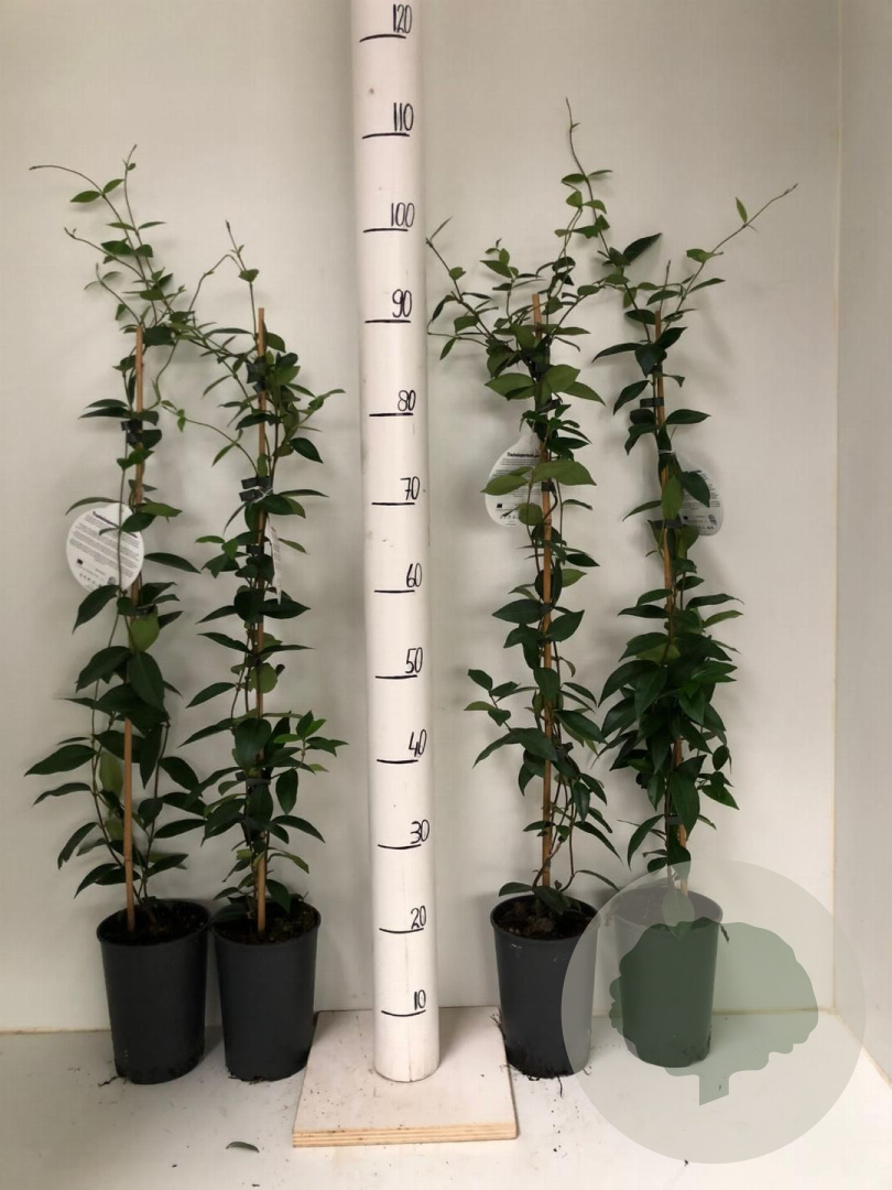 | Toelichting | De Sterjasmijn is een prachtige klimplant met witte bloemen en donkergroen blad. Deze plant bloeit van juni tot september en gedijt goed in zon en halfschaduw op zandgrond, lichte klei of neutrale grond. |
