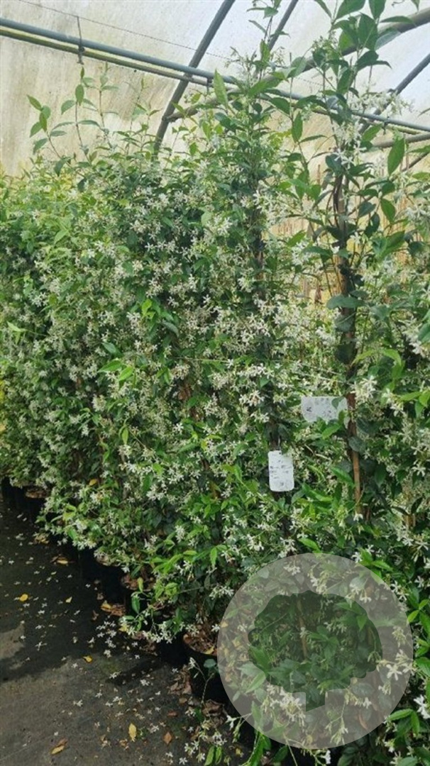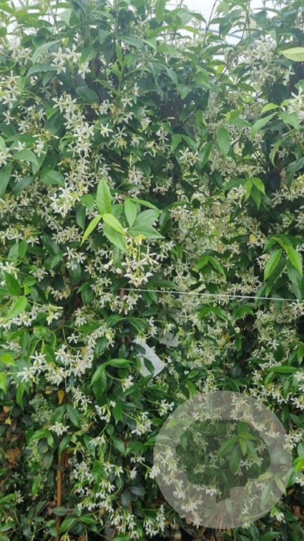 | Toelichting | De Sterjasmijn is een prachtige klimplant met witte bloemen en donkergroen blad. Deze plant bloeit van juni tot september en gedijt goed in zon en halfschaduw op zandgrond, lichte klei of neutrale grond. |