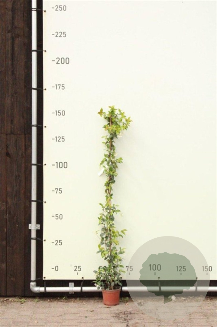 | Toelichting | De Sterjasmijn is een prachtige klimplant met witte bloemen en donkergroen blad. Deze plant bloeit van juni tot september en gedijt goed in zon en halfschaduw op zandgrond, lichte klei of neutrale grond. |