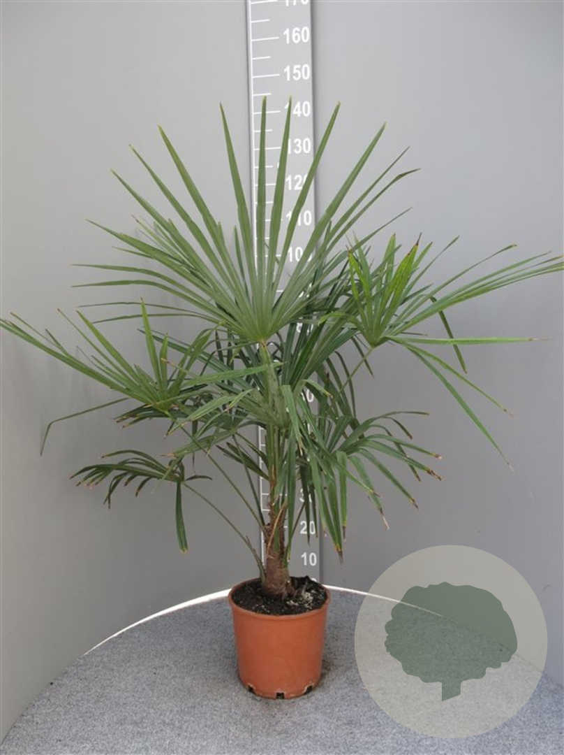 Toelichting | De Trachycarpus fortunei, ook wel bekend als de Chinese waaierpalm, is een prachtige palmboom met geelgroene bloemen. Deze palm kan een hoogte bereiken van 300 cm en bloeit in de zomermaanden juni en juli. Plaats de palm op een zonnige tot halfschaduwrijke plek in goed doorlatende, neutrale grond. |