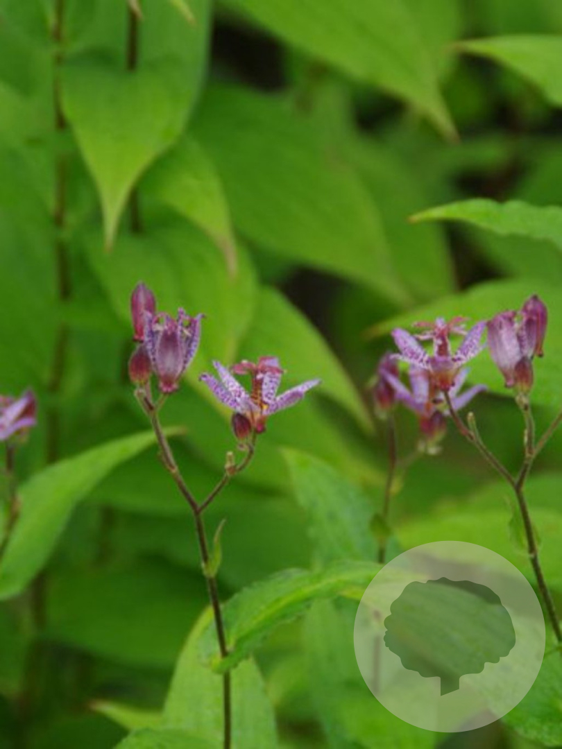 | Toelichting | De Karmozijnplant (Tricyrtis 'Dark Form') is een prachtige plant met paarse bloemen en groen blad. Deze plant bloeit van augustus tot oktober en gedijt het beste in halfschaduw op humusrijke grond. Bereikt een hoogte van 60-90 cm. |