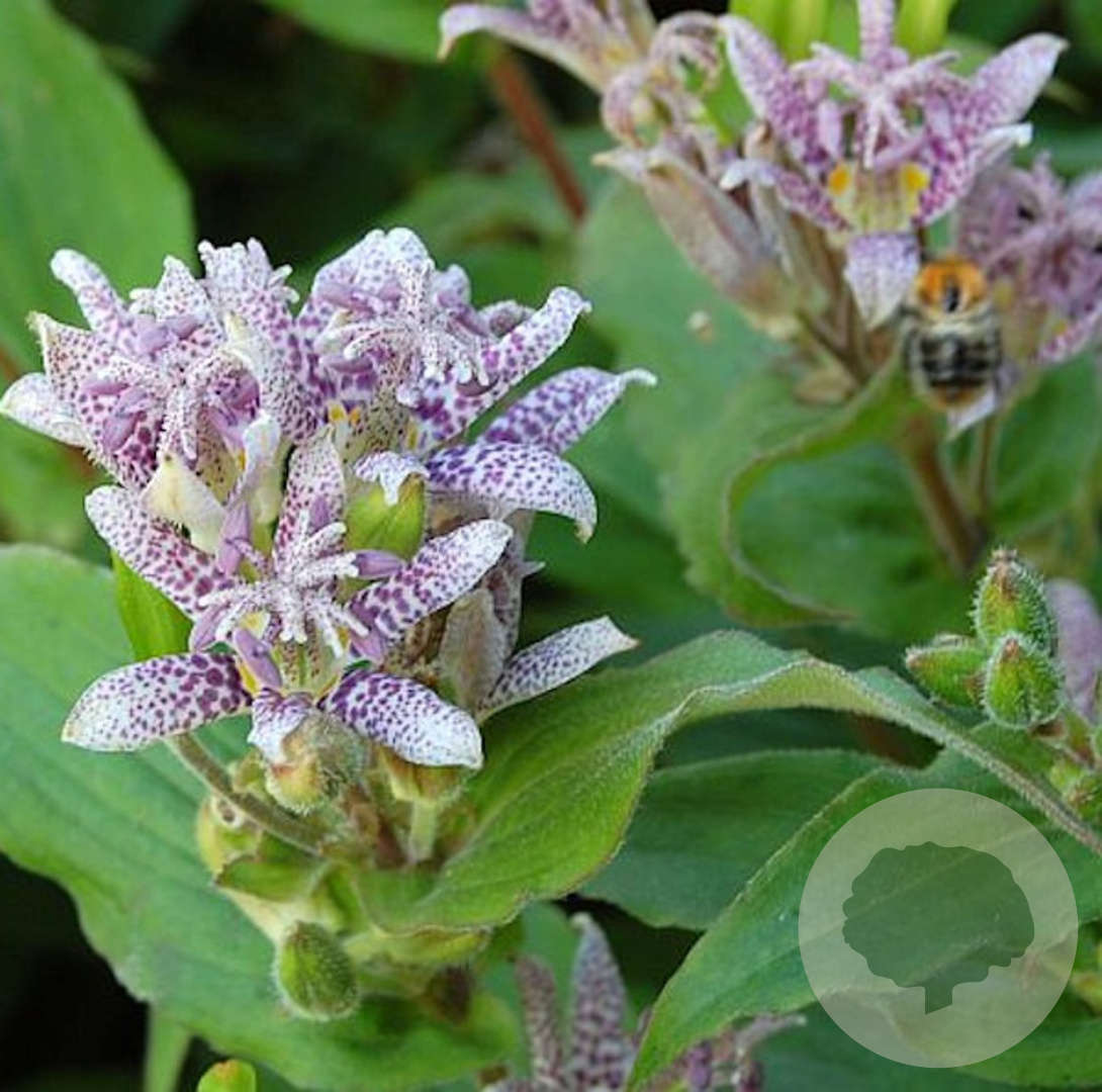 ToelichtingTricyrtis, ook bekend als 'Pad-lelie', is een prachtige vaste plant met paarse en witte bloemen in augustus en september. Deze plant gedijt goed in de halfschaduw op lichte klei en humusrijke grond, en bereikt een hoogte van 50-60 cm.