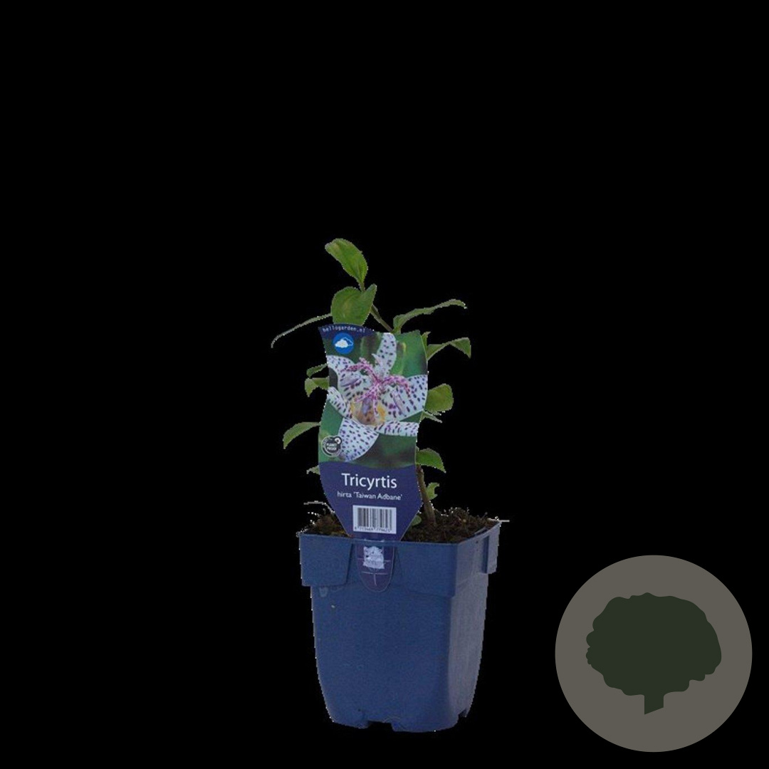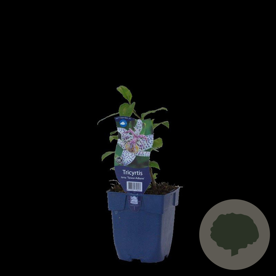 | Toelichting | De Tricyrtis hirta 'Taiwan Adbane', ook wel bekend als Kranssalomonszegel, is een prachtige plant met paarse en witte bloemen die bloeien in augustus en september. Deze plant gedijt het beste in de halfschaduw op humusrijke en neutrale grond. |