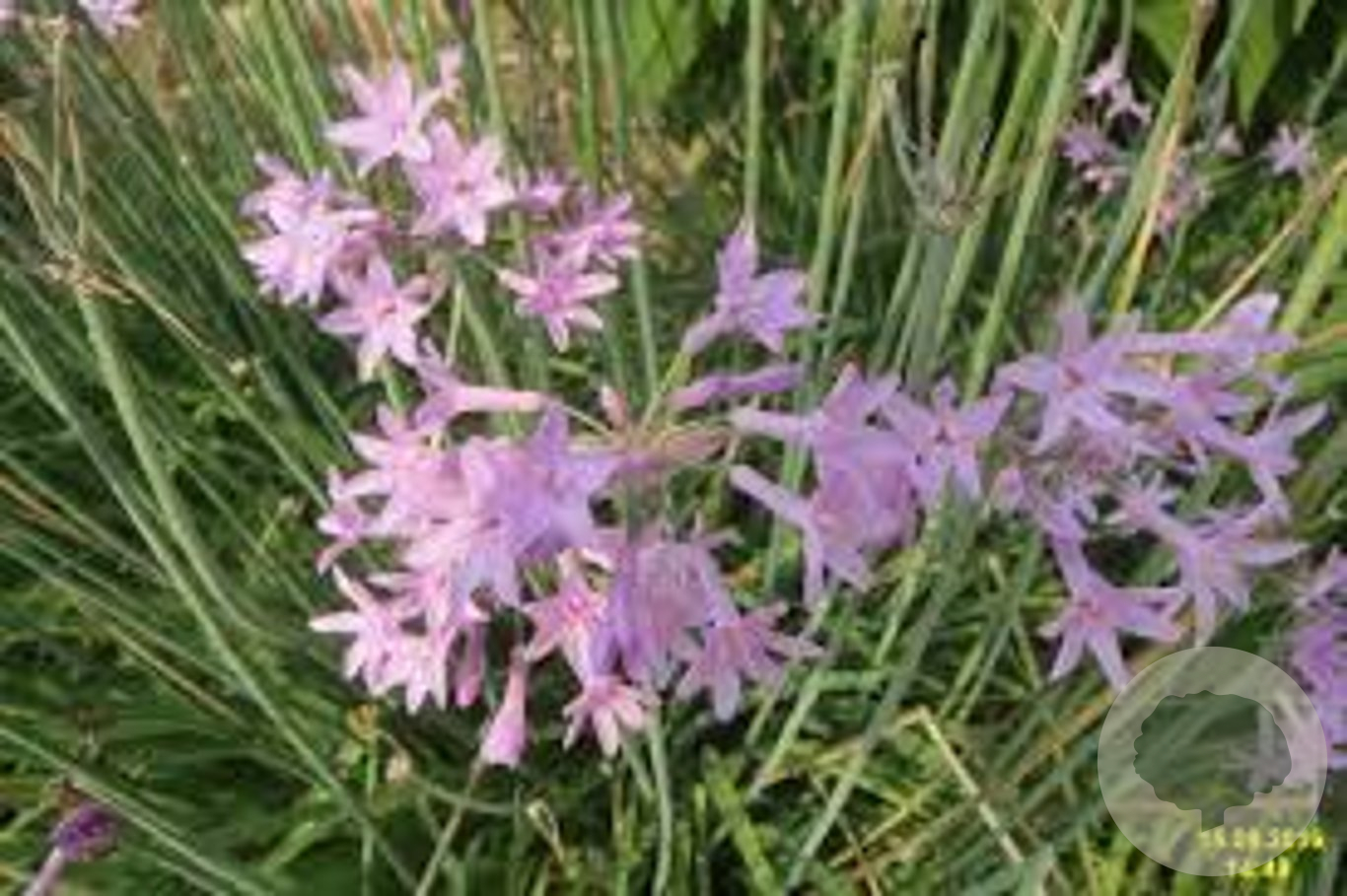 ToelichtingDe Tulbaghia violacea, ook wel bekend als Kaapse knoflook, is een prachtige plant met paarse bloemen en groen blad. Deze plant bloeit van juni tot augustus en gedijt goed in zonnige tot halfschaduwrijke standplaatsen met neutrale, goede tuingrond.