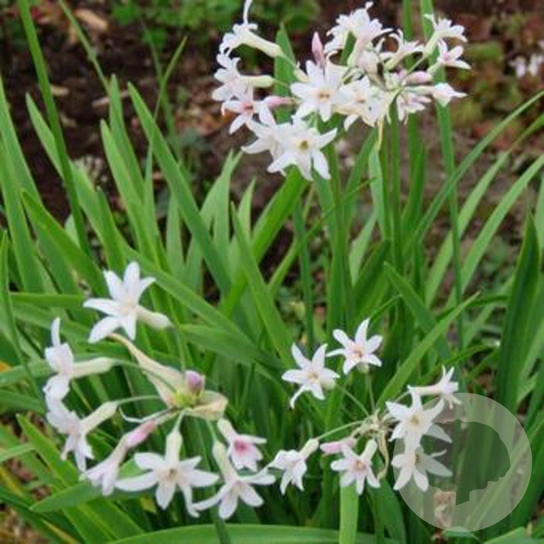ToelichtingDe Tulbaghia violacea, ook wel bekend als Kaapse knoflook, is een prachtige plant met paarse bloemen en groen blad. Deze plant bloeit van juni tot augustus en gedijt goed in zonnige tot halfschaduwrijke standplaatsen met neutrale, goede tuingrond.