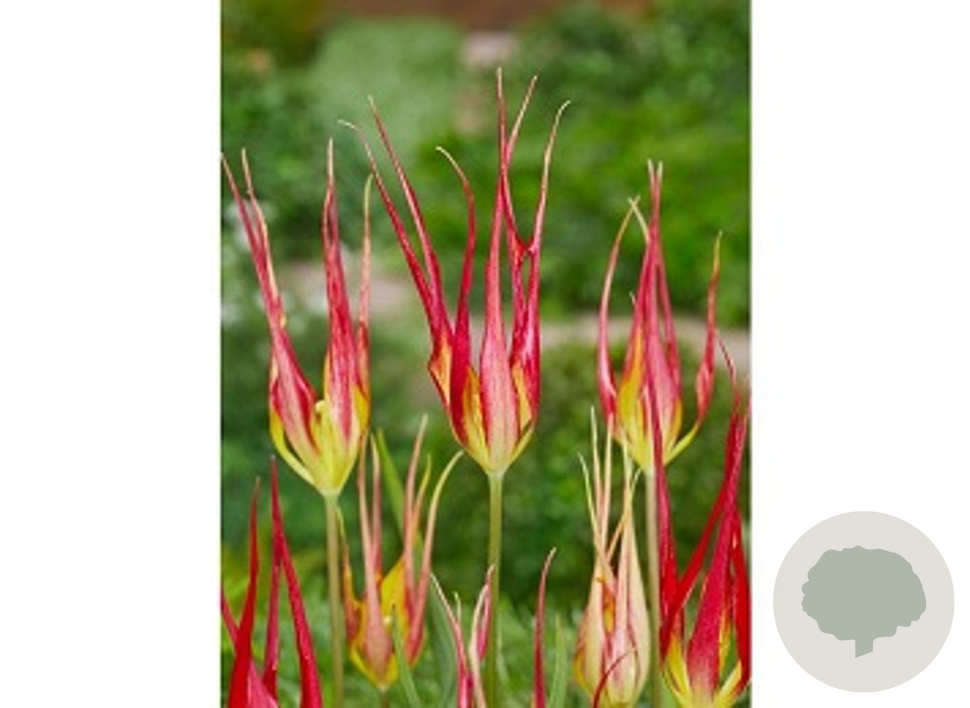 | Toelichting | De Tulipa acuminata, ook bekend als de Tulp, is een prachtige bloem met geel en rood gekleurde bloemblaadjes. Deze tulp bloeit in april en mei en gedijt het beste in de volle zon op zandgrond of neutrale grond. |