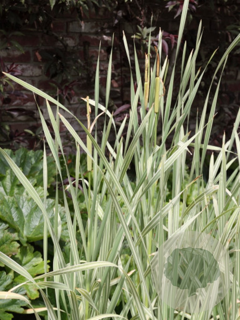 | Toelichting | De Brede lisdodde (Typha latifolia 'Variegata') is een opvallende moerasplant met groen-wit gestreept blad en gele bloemen. Deze plant bloeit van juni tot augustus en gedijt goed in zonnige tot halfschaduwrijke gebieden met voedselrijke, neutrale grond. |
