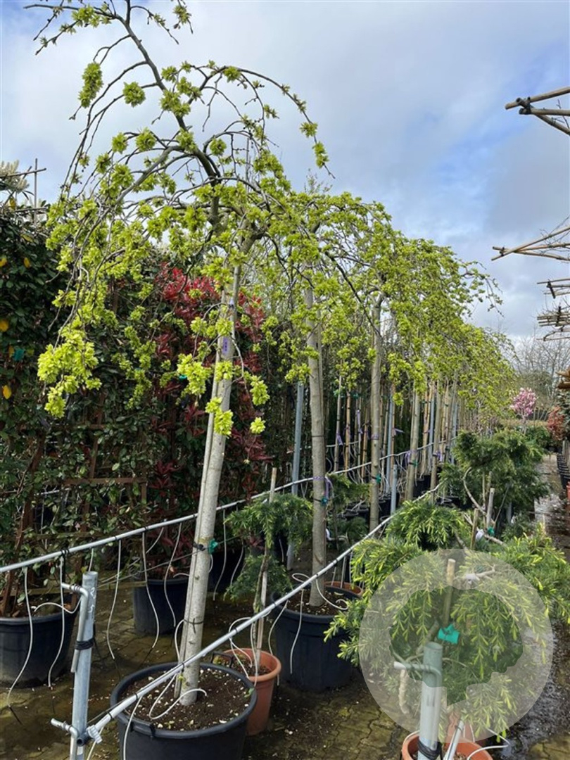 | Toelichting | De Rode iep (Ulmus glabra 'Pendula') is een prachtige boom met hangende takken en groen blad. In het voorjaar bloeit de boom met gele bloemen. Geschikt voor zon en halfschaduw op zandgrond, lichte klei of neutrale grond. |