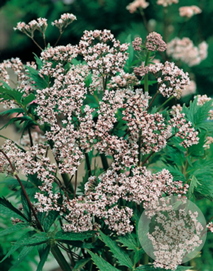 | Toelichting | De Echte valeriaan is een prachtige vaste plant met roze bloemen die bloeit van juni tot augustus. Deze plant gedijt goed in zon en halfschaduw op lichte klei, neutrale of humusrijke grond. Bereikt een hoogte van 120 cm. |