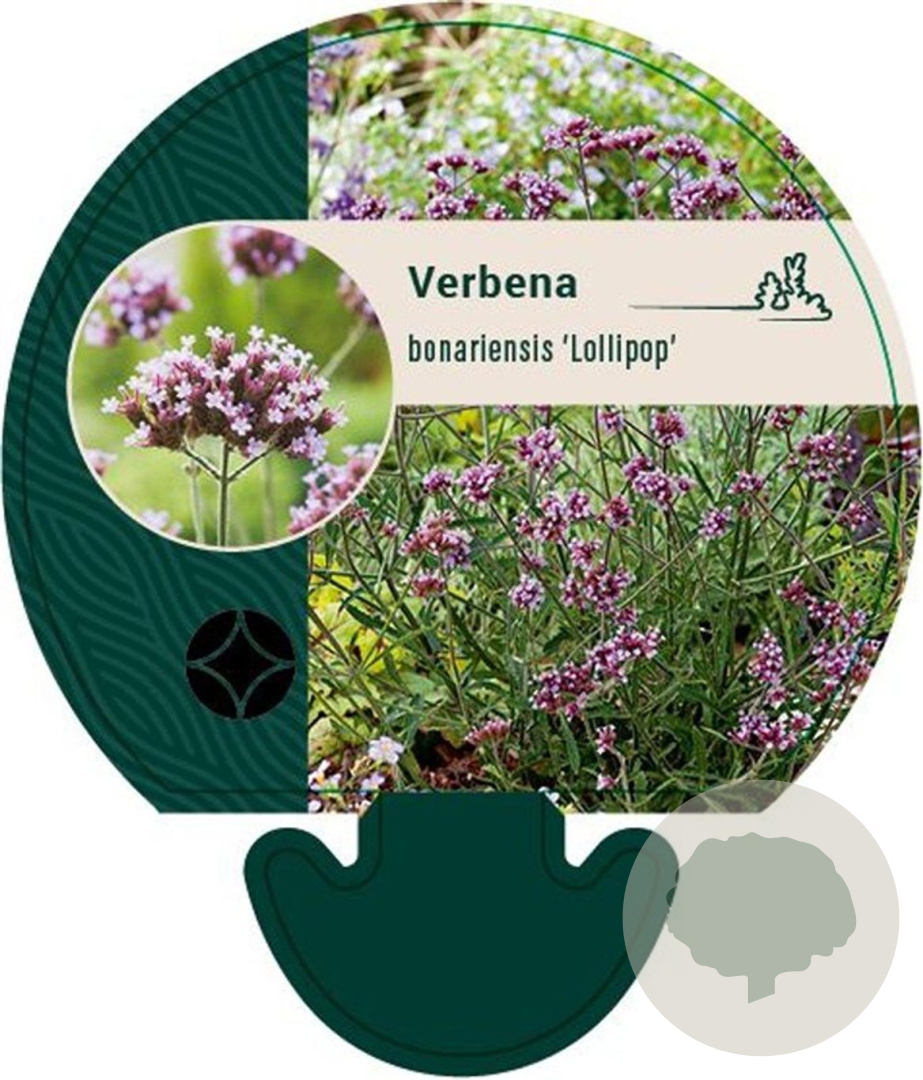 | Toelichting | De Verbena bonariensis 'Lollipop', ook wel IJzerhard genoemd, bloeit van juni tot oktober met paarse bloemen. Deze plant wordt 60-90 cm hoog en gedijt het beste in de volle zon op goede tuingrond of humusrijke grond. |