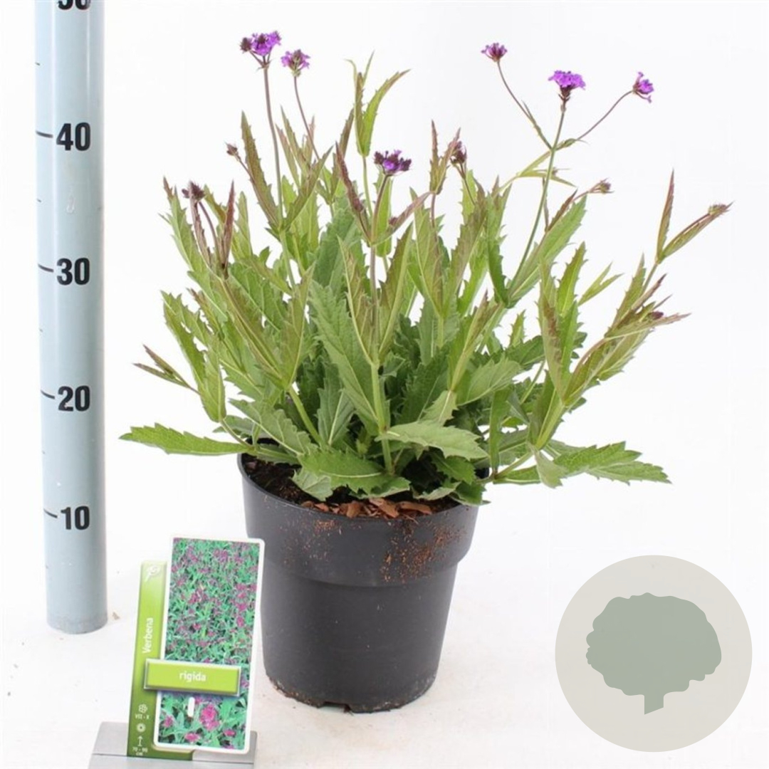 | Toelichting | De Verbena rigida, ook wel bekend als IJzerhard, bloeit van juni tot september met prachtige paarse bloemen. Deze vaste plant wordt ongeveer 40 cm hoog en gedijt het beste in de zon op zandgrond, lichte klei of neutrale grond. |