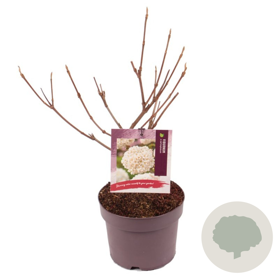 | Toelichting | De Viburnum carlcephalum, ook wel bekend als de Sneeuwbal, is een prachtige struik met witte bloemen die bloeien in april en mei. Deze plant gedijt goed in zon en halfschaduw op zandgrond, lichte klei of neutrale grond. De volwassen hoogte is ongeveer 200 cm. |