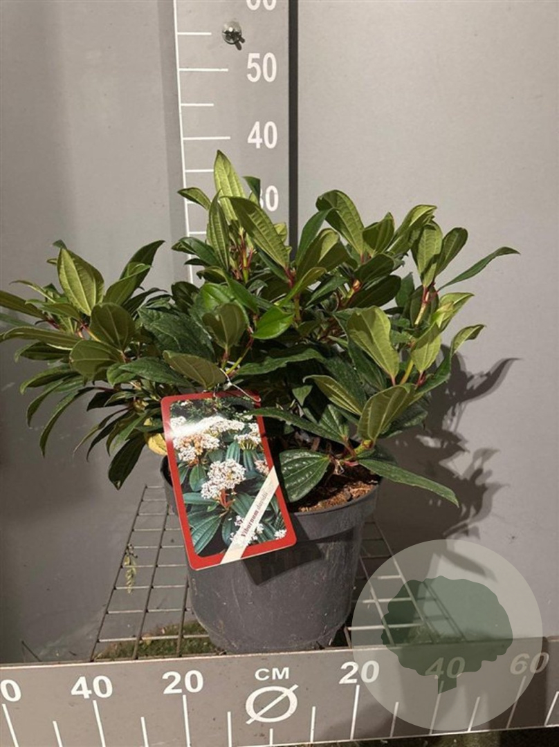 ToelichtingViburnum davidii, ook wel bekend als Laurustinus, is een compacte struik met donkergroen blad en witte bloemen in de periode mei-juni. Deze plant gedijt goed in zon en halfschaduw op zandgrond, lichte klei of neutrale grond.