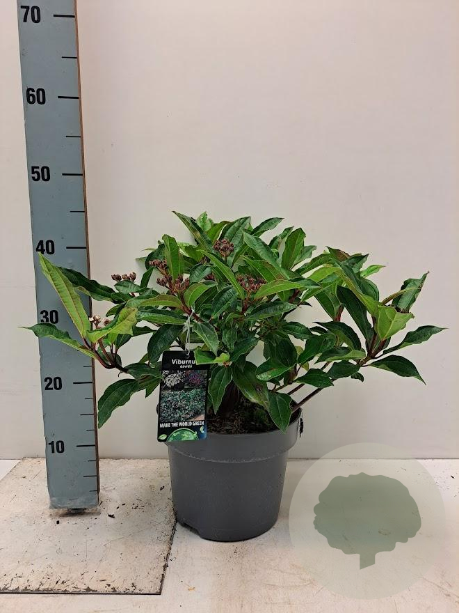 | Toelichting | Viburnum davidii, ook wel bekend als Laurustinus, is een compacte struik met donkergroen blad en witte bloemen in de periode mei-juni. Deze plant gedijt goed in zon en halfschaduw op zandgrond, lichte klei of neutrale grond. |