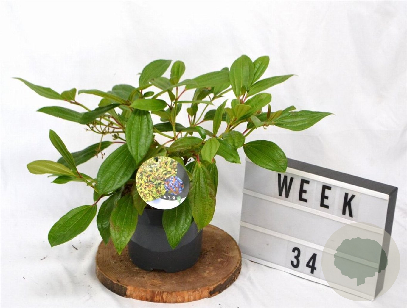 ToelichtingViburnum davidii, ook wel bekend als Laurustinus, is een compacte struik met donkergroen blad en witte bloemen in de periode mei-juni. Deze plant gedijt goed in zon en halfschaduw op zandgrond, lichte klei of neutrale grond.