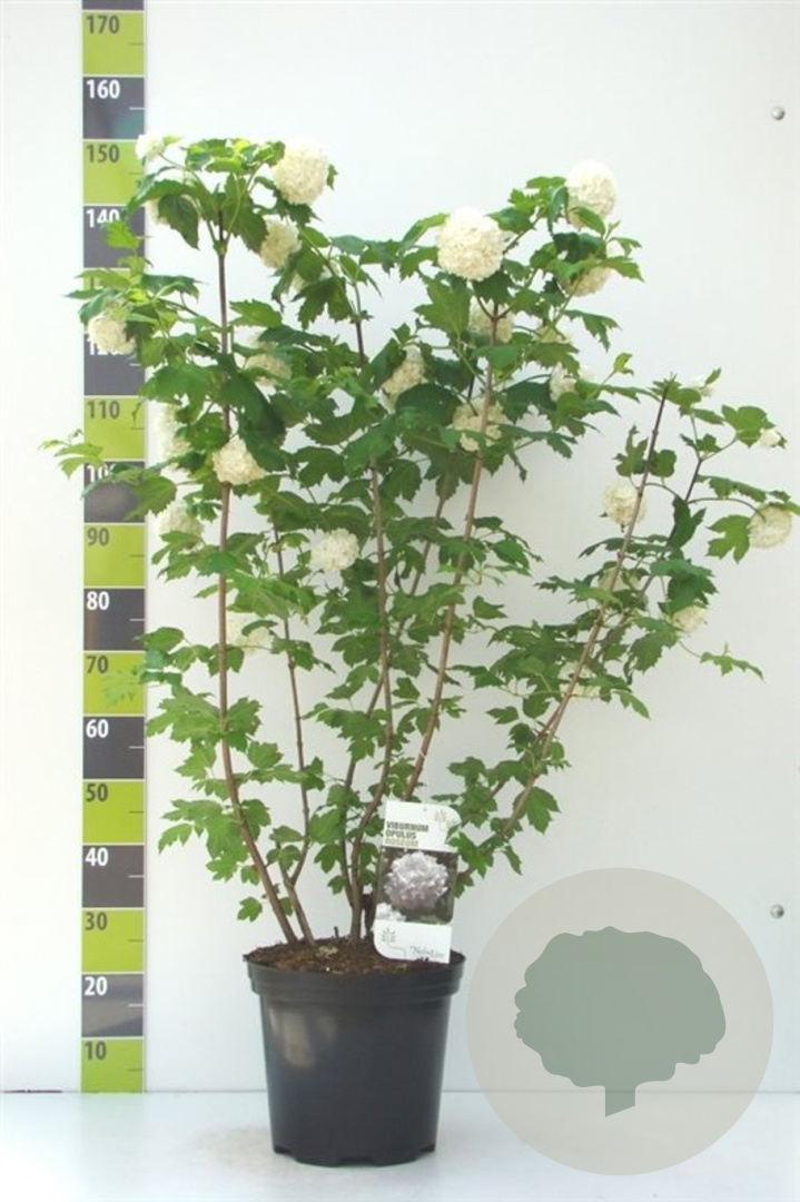 | Toelichting | De Gelderse roos (Viburnum opulus 'Roseum') is een inheemse struik met prachtige witte bloemen in mei-juni. De plant gedijt goed in zon en halfschaduw op lichte klei, zure of humusrijke grond. Bereikt een volwassen hoogte van 200 cm. |