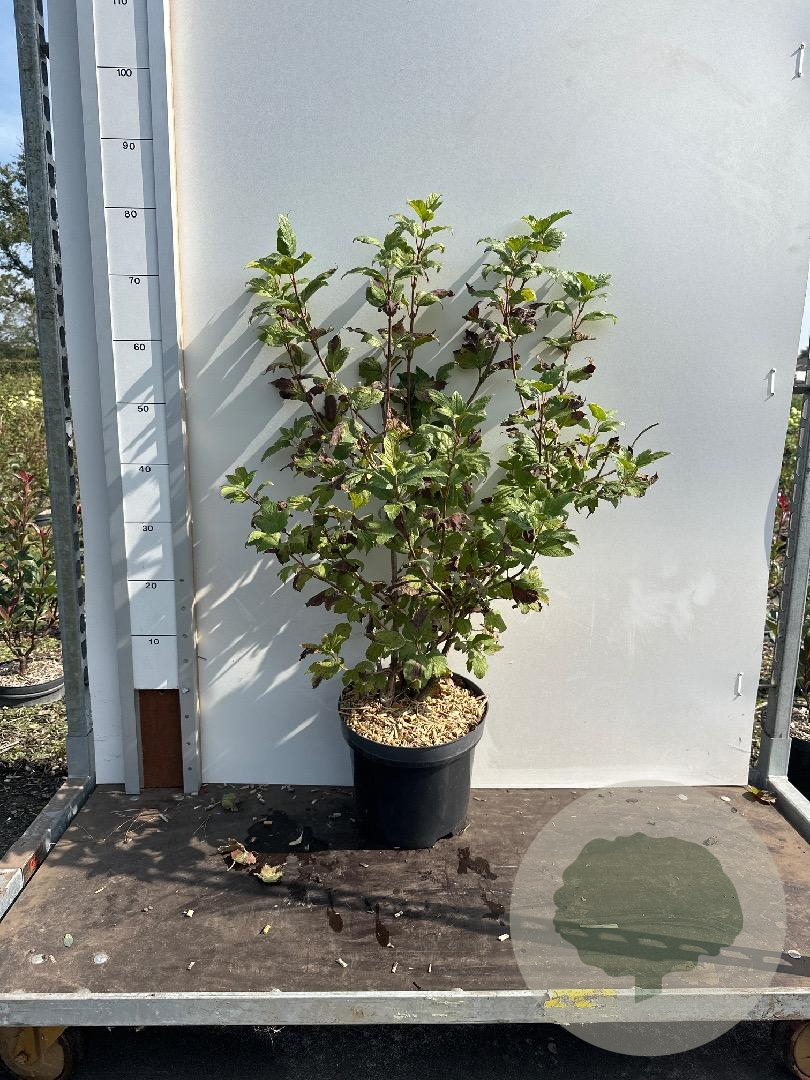 | Toelichting | De Gelderse roos (Viburnum opulus 'Roseum') is een inheemse struik met prachtige witte bloemen in mei-juni. De plant gedijt goed in zon en halfschaduw op lichte klei, zure of humusrijke grond. Bereikt een volwassen hoogte van 200 cm. |