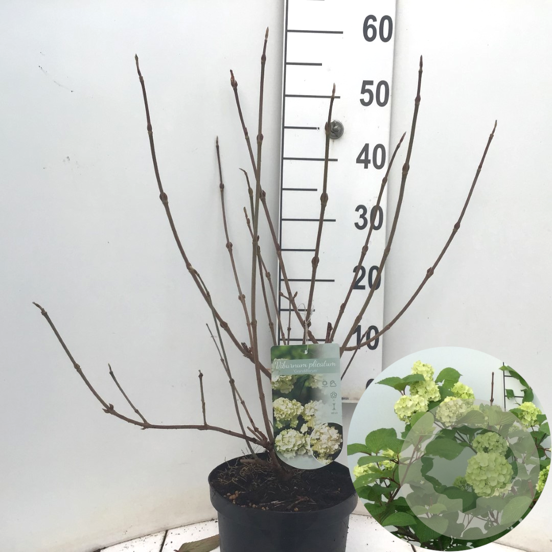 | Toelichting | De Grootbladige Sneeuwbal (Viburnum plic. 'Grandiflorum') is een prachtige heester met grote witte bloemen in de periode april - mei. Deze plant wordt ongeveer 200 cm hoog en gedijt goed in zon en halfschaduw op lichte klei, neutrale grond of goede tuingrond. |