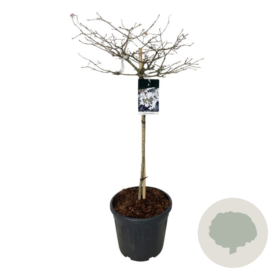 | Toelichting | De Japanse sneeuwbal (Viburnum plic. 'Watanabe') is een prachtige heester met witte bloemen in april en mei. Deze plant wordt ongeveer 200 cm hoog en gedijt goed in zon en halfschaduw op lichte klei, neutrale of voedselrijke grond. |
