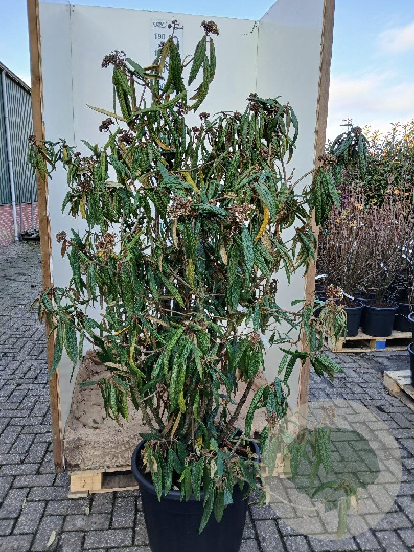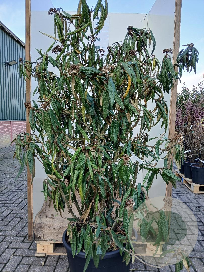 | Toelichting | De Viburnum rhytidophyllum, ook wel bekend als de Rimpelbladige Sneeuwbal, is een prachtige heester met donkergroene bladeren en witte bloemen in april en mei. Deze plant gedijt goed in zon en halfschaduw op diverse grondsoorten. |