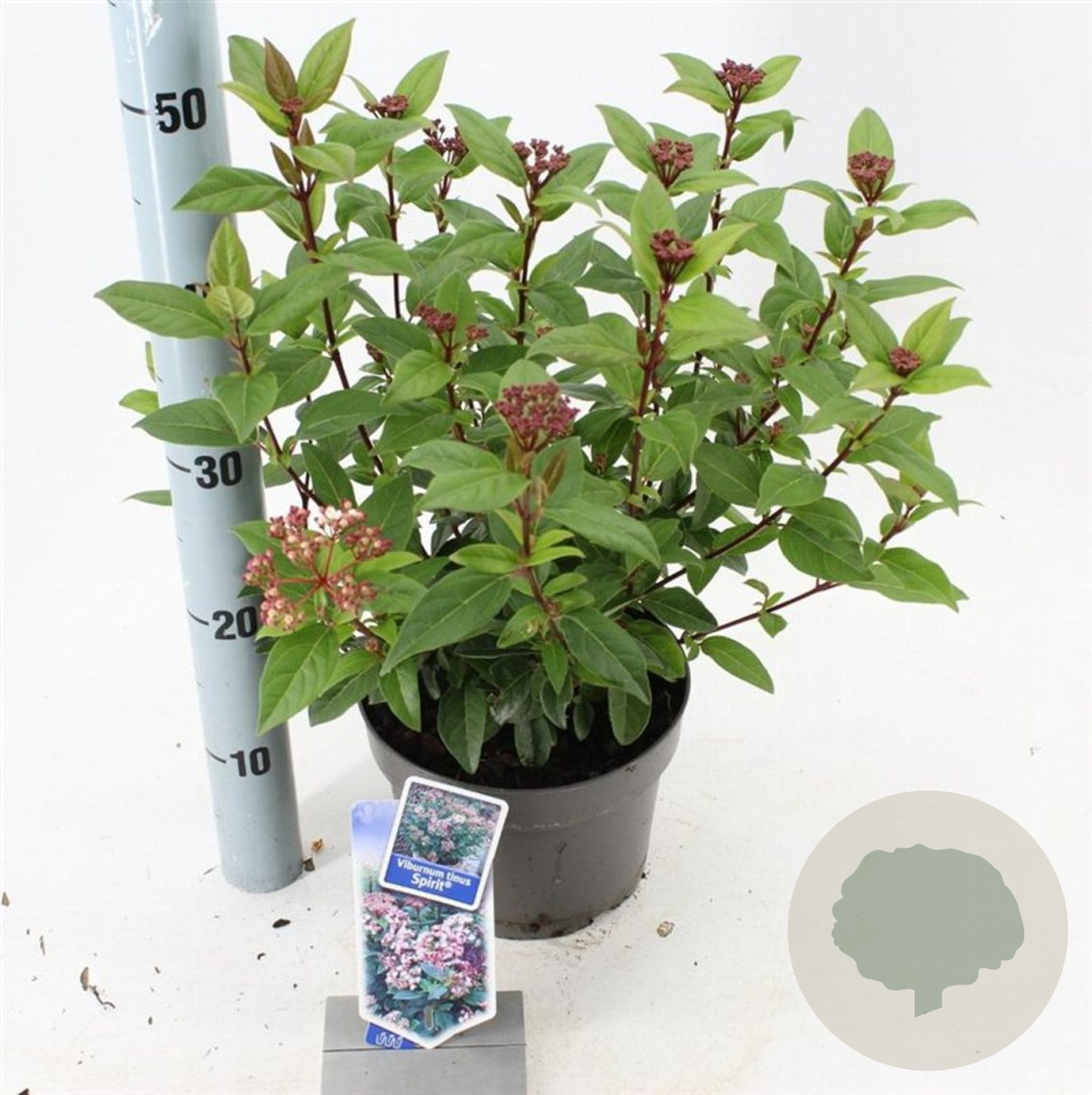 | Toelichting | De Viburnum tinus 'Spirit', ook wel Sneeuwbal genoemd, is een prachtige heester met witte bloemen in het voorjaar. Deze wintergroene plant gedijt goed in de zon en halfschaduw op lichte klei of neutrale, voedselrijke grond. Bereikt een hoogte van 200 cm en bloeit van april tot mei. |