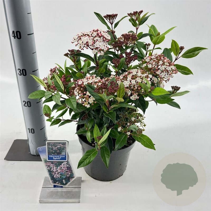 | Toelichting | De Viburnum tinus 'Spirit', ook wel Sneeuwbal genoemd, is een prachtige heester met witte bloemen in het voorjaar. Deze wintergroene plant gedijt goed in de zon en halfschaduw op lichte klei of neutrale, voedselrijke grond. Bereikt een hoogte van 200 cm en bloeit van april tot mei. |