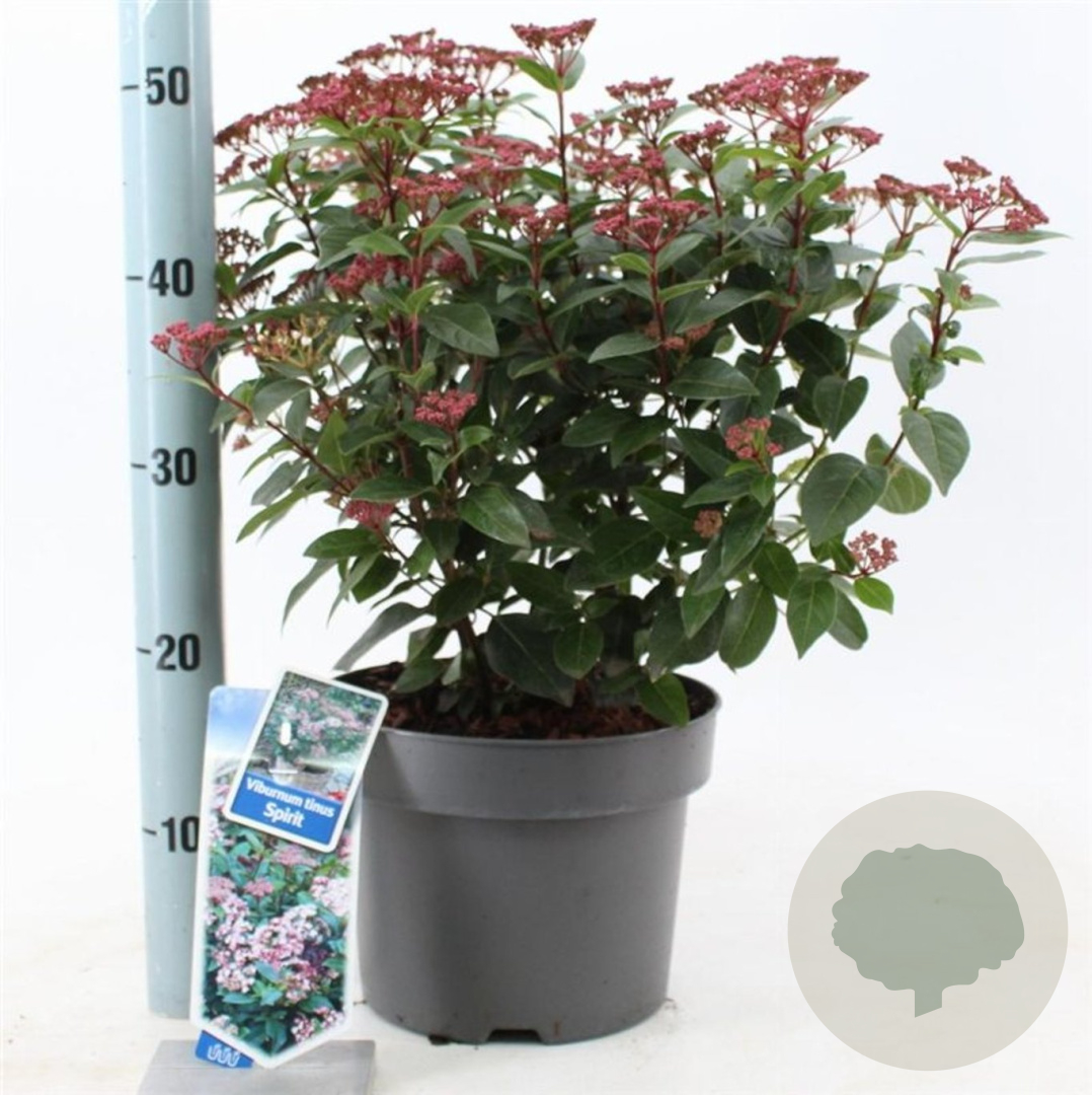 | Toelichting | De Viburnum tinus 'Spirit', ook wel Sneeuwbal genoemd, is een prachtige heester met witte bloemen in het voorjaar. Deze wintergroene plant gedijt goed in de zon en halfschaduw op lichte klei of neutrale, voedselrijke grond. Bereikt een hoogte van 200 cm en bloeit van april tot mei. |