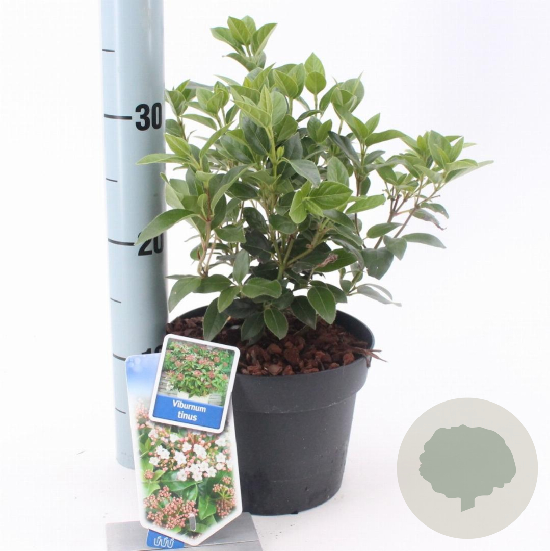 | Toelichting | De Viburnum tinus, ook wel Laurierkers genoemd, is een prachtige winterbloeiende heester met witte bloemen en donkergroen blad. Deze plant gedijt goed in zon en halfschaduw op zandgrond, lichte klei of neutrale grond. Ideaal voor een kleurrijke tuin in de koudere maanden. |