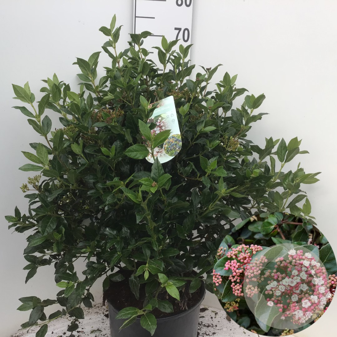 | Toelichting | De Viburnum tinus, ook wel Laurierkers genoemd, is een prachtige winterbloeiende heester met witte bloemen en donkergroen blad. Deze plant gedijt goed in zon en halfschaduw op zandgrond, lichte klei of neutrale grond. Ideaal voor een kleurrijke tuin in de koudere maanden. |